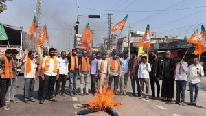 బంగ్లాదేశులో ఇస్లాం మతం పేరుతో హిందువులపై జరుగుతున్న దమనకాండను ప్రపంచం యావత్తు ముక్తకంఠంతో ఖండించాలని భారతీయ జనతా పార్టీ నాయకులు పిలుపునిచ్చారు. బంగ్లాదేశ్ హిందూ యువకుడు దాస్ గుప్తాను ముస్లింలు అత్యంత కిరాతకంగా హతమార్చి, చెట్టుకు కట్టేసి దహనం చేయడాన్ని నిరసిస్తూ, ఇస్లాం మతోన్మాధుల దిష్టిబొమ్మను ఆదివారం కమాన్ చౌరస్తా వద్ద దగ్ధం చేసారు. ఈ సందర్భంగా పట్టణ అధ్యక్షుడు పెంజర్ల రాకేష్ మాట్లాడుతూ, అన్ని ధర్మాలకు దేవుడు ఒక్కడేనని తన అభిప్రాయాన్ని ప్రకటించిన పాపానికి దాస్ గుప్తా తన ప్రాణాలు పోగొట్టుకున్నాడని తెలిపారు. పరమత సహనంపై ప్రగల్భాలు పలికే ఇస్లాం మతోన్మాదుల నిజస్వరూపానికి ఇది నిదర్శనమని ఆగ్రహం వ్యక్తం చేశారు. భారతీయులు తలుచుకుంటే ఇక్కడ అక్రమంగా నక్కిన బంగ్లాదేశ్ కుక్కలను పాతిపెడతామని హెచ్చరించారు. ఇక బంగ్లాదేష్ ఆగడాలను ఉపేక్షించేదిలేదని, తగిన గుణపాఠం చెప్తామన్నారు. బంగ్లాదేశ్ హిందువులకు అండగా ఉంటామన్నారు. ఈ దేశంలో ఉంటూ శత్రు దేశాలకు వంతపాడే రాజకీయ నాయకులు తమపద్దతి మార్చుకోవాలని లేనిపక్షంలో ప్రజా సమక్షంలో శిక్ష తప్పదని రాకేష్ వారించారు. ఈ నిరసనలో సీనియర్ నాయకులు తంగెడ రాజేశ్వరరావు, కావేటి రాజగోపాల్, రాజమహంత కృష్ణ, ఎర్రోళ్ల శ్రీకాంత్, ఉప్పు కిరణ్, పట్టణ మండల ప్రధాన కార్యదర్శులు గుడ్ల సతీష్, మామిడి ఉమేష్, పడాల శ్రీధర్, ఉపాధ్యక్షులు బొడ్డుపల్లి కుమార్, పిట్ట వినయ్, కోశాధికారి గదాసి సతీష్, కార్యదర్శులు పోగుల రాజు, భూతగడ్డ రాజ్ కుమార్, ముంజ రాజేంద్రప్రసాద్, బొడ్డుపల్లి సంపత్, కుక్క వంశీ, మధుకర్, భగవత్, పూదరి హరీష్, కుక్క అంజి, జపతి శ్రీను, అరుణ్ షిండే, శివ, సాయి, సతీష్, వినోద్, జస్వంత్ తదితరులు పాల్గొన్నారు.