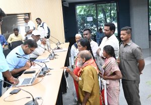 సోమవారం ప్రజావాణి కార్యక్రమం సందర్భంగా పెద్ద‌ప‌ల్లి జిల్లా కలెక్టర్ కోయ శ్రీ హర్ష సమీకృత జిల్లా కలెక్టరేట్ లో అదనపు కలెక్టర్ డి.వేణు తో కలిసి ప్రజల నుండి దరఖాస్తులను స్వీకరించారు.