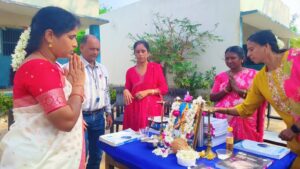పాఠశాలను సంప్రదాయ పద్ధతుల్లో అలంకరించి సరస్వతి మాతా ప్రత్యేక పూజలు నిర్వహించబడింది.