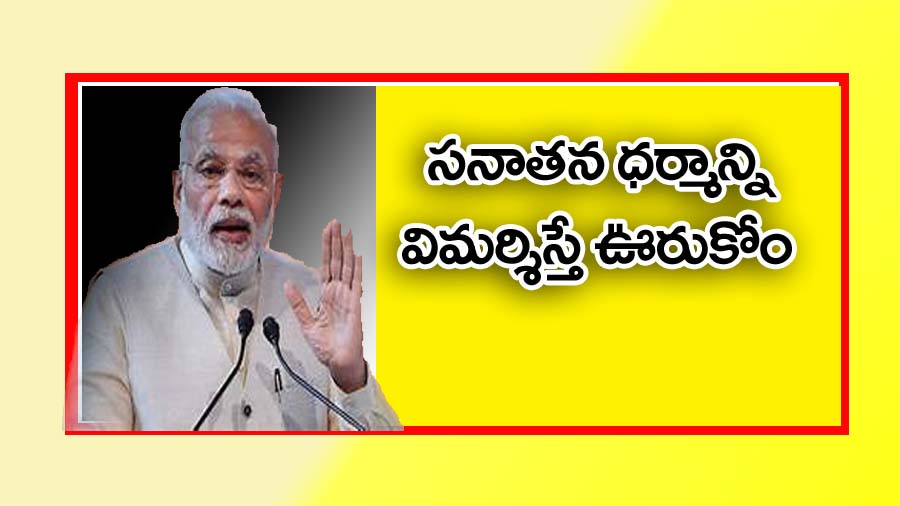 సనాతన ధర్మాన్ని విమర్శిస్తే ఊరుకోమని ప్రధాని మోదీ హెచ్చరించారు. . మధ్యప్రదేశ్లోని బినాలో జరిగిన కార్యక్రమంలో మాట్లాడుతూ ఆయన ఈ వ్యాఖ్యలు చేశారు. ఇండియా కూటమిపై ప్రధాని మోదీ తీవ్ర విమర్శలు చేశారు. సనాతన ధర్మాన్ని ఆ కూటమి అంతం చేయాలని భావిస్తోందన్నారు. సనాతన ధర్మంపై డీఎంకే మంత్రి ఉదయనిధి స్టాలిన్ ఇటీవల వివాదాస్పద వ్యాఖ్యలు చేసిన విషయం తెలిసిందే. డెంగ్యూ, మలేరియాతో ఆ ధర్మాన్ని పోల్చారాయన. అయితే ఆ వ్యాఖ్యల నేపథ్యంలో దేశవ్యాప్తంగా చర్చ జరిగింది. వివాదాస్పద వ్యాఖ్యలను అనేక మంది ఖండించారు. తాజాగా ప్రధాని మోదీ ఇవాళ ఓ విూటింగ్లో ఆ అంశాన్ని తన ప్రసంగంలో ప్రస్తావించారు.