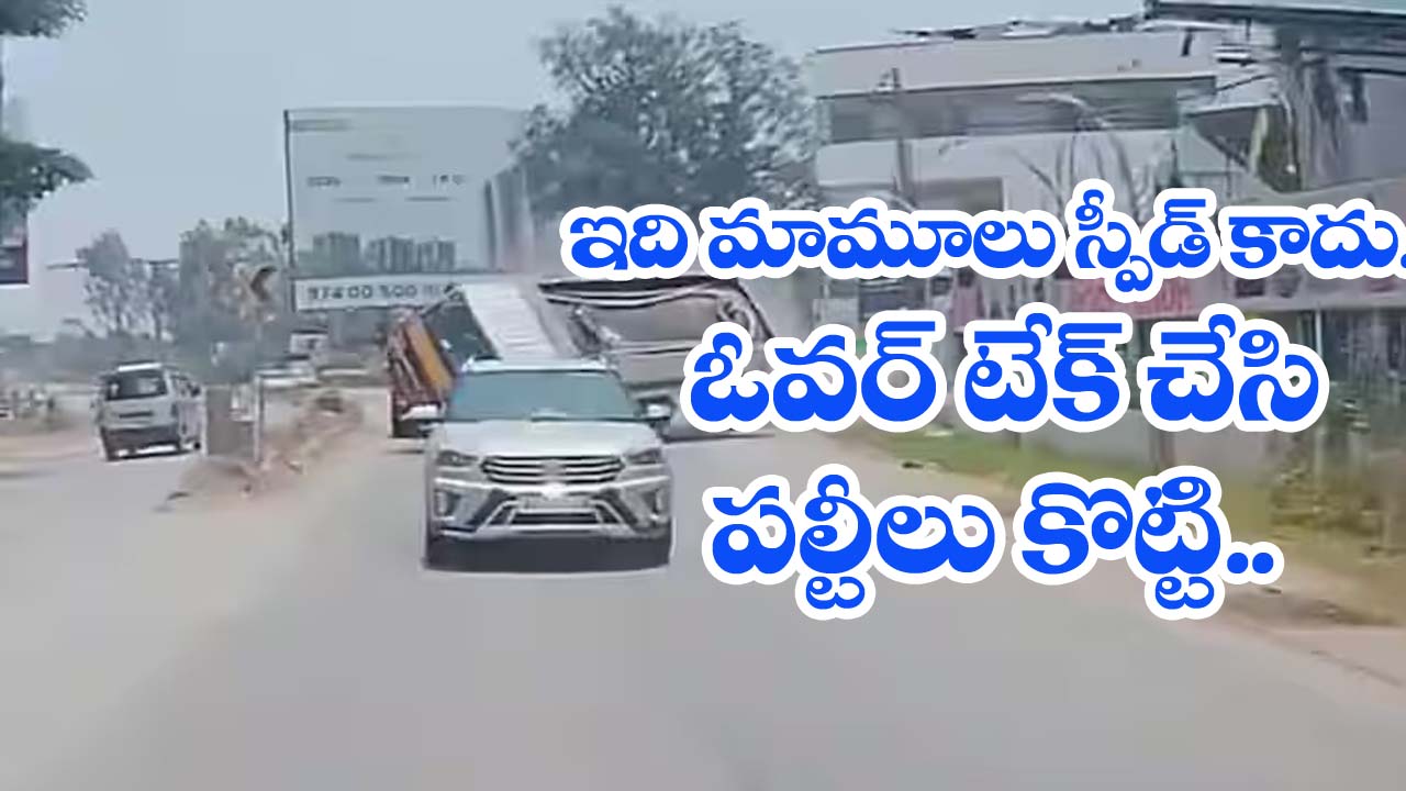 Bus accident” బైక్ తప్పించబోయి.. బోల్తా పడ్డ బస్సు.. వీడియో